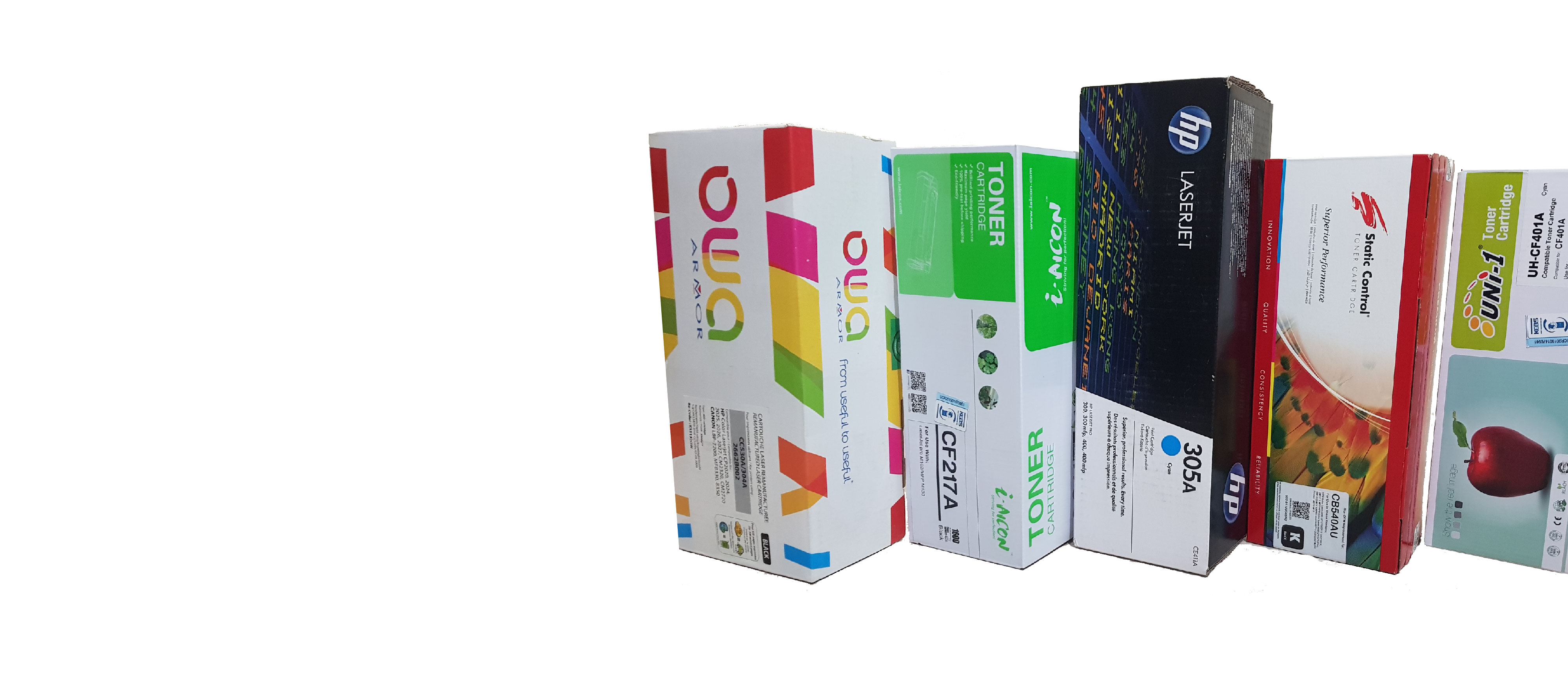 We supply original HP, Epson ribbons, OWA and Static Control toners. With OWA and Static Control we provide guarantees on the toner as well as the printer.